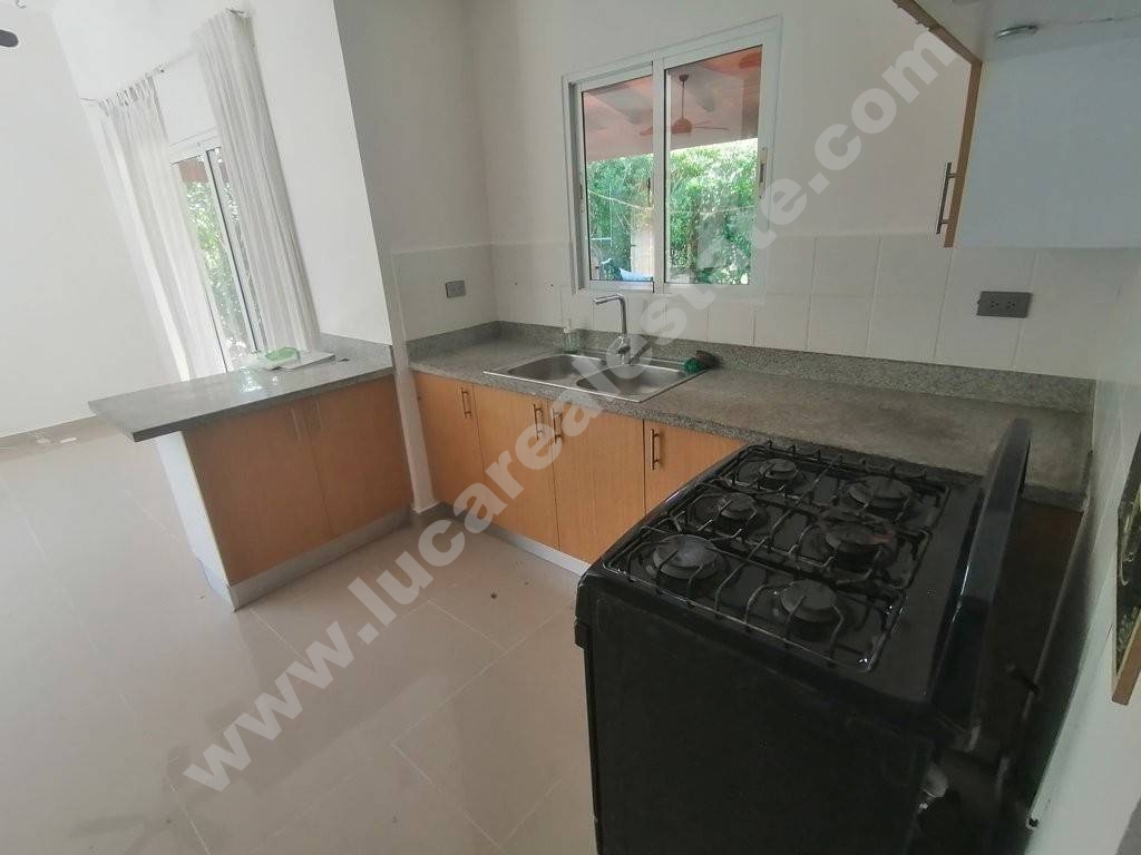 Linda casa de un nivel, compuesta de una habitación principal con closet y baño, dos habitaciones secundarias con closet en madera, un baño compartido externo a las 2 habitaciones secundarias, amplia sala con área comedor, cocina modular con tope y desayunador en granito, habitación de servicio con baño, un área de lavado y closet para ropa blanca.