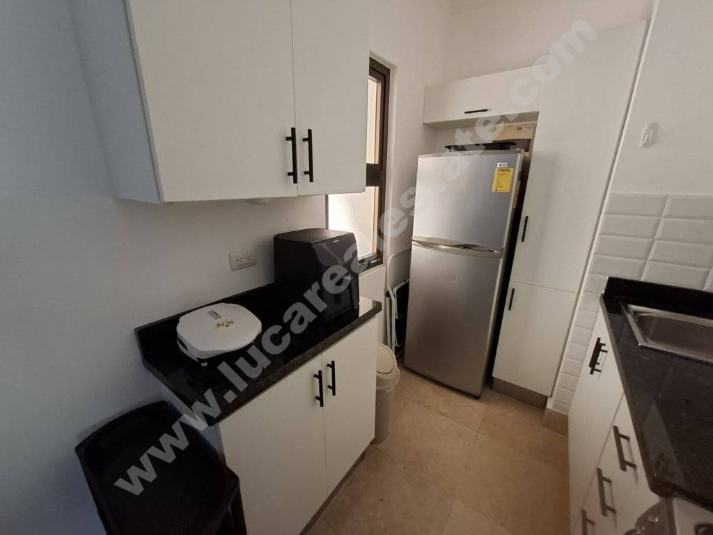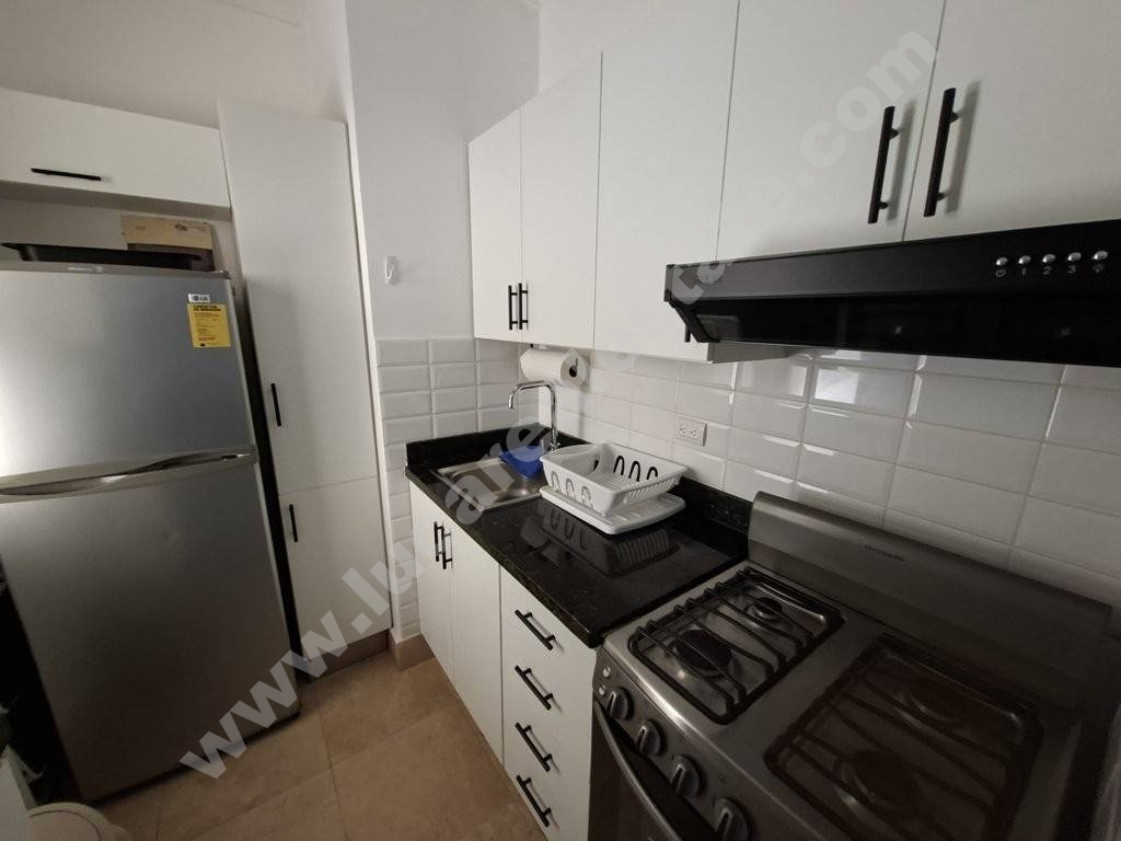 El apartamento se compone de una amplia sala con comedor, cocina equipada con encimera en granito, una habitación con dos closets de pared, área de lavado y baño.
