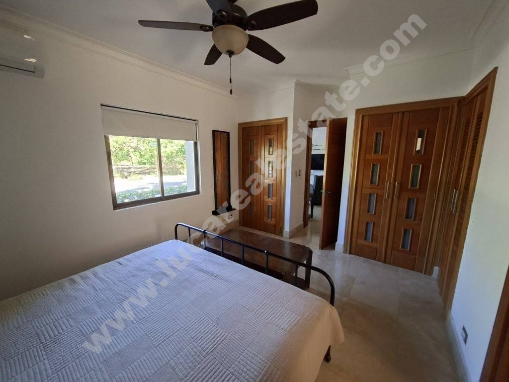 El apartamento esta enteramente amueblado y equipado con aires acondicionados en todos los ambientes, lavadora, estufa y nevera ademas dispone de abanicos de techos.