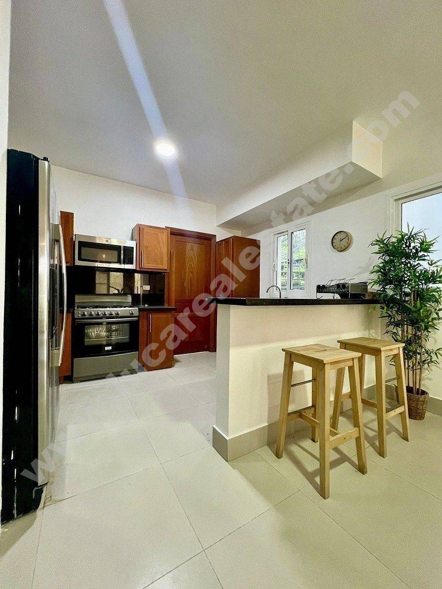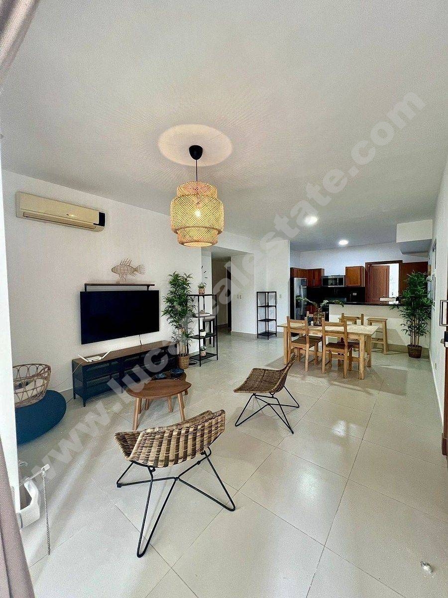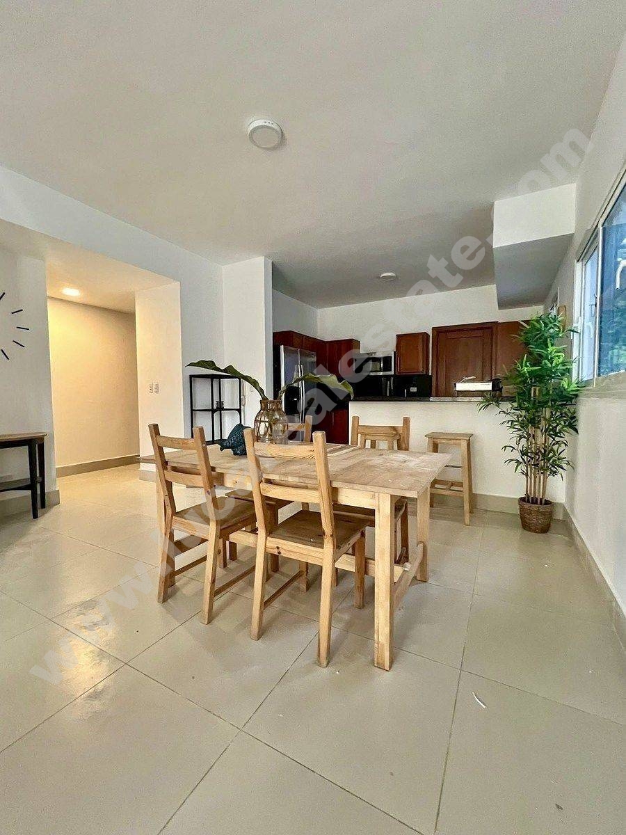 El apartamento está ubicado en el primer piso del residencial Los Laureles, tiene dos parqueos reservados y área común con jardín y piscina, además disfruta de la seguridad 24 hora que ofrece Punta Cana Village.