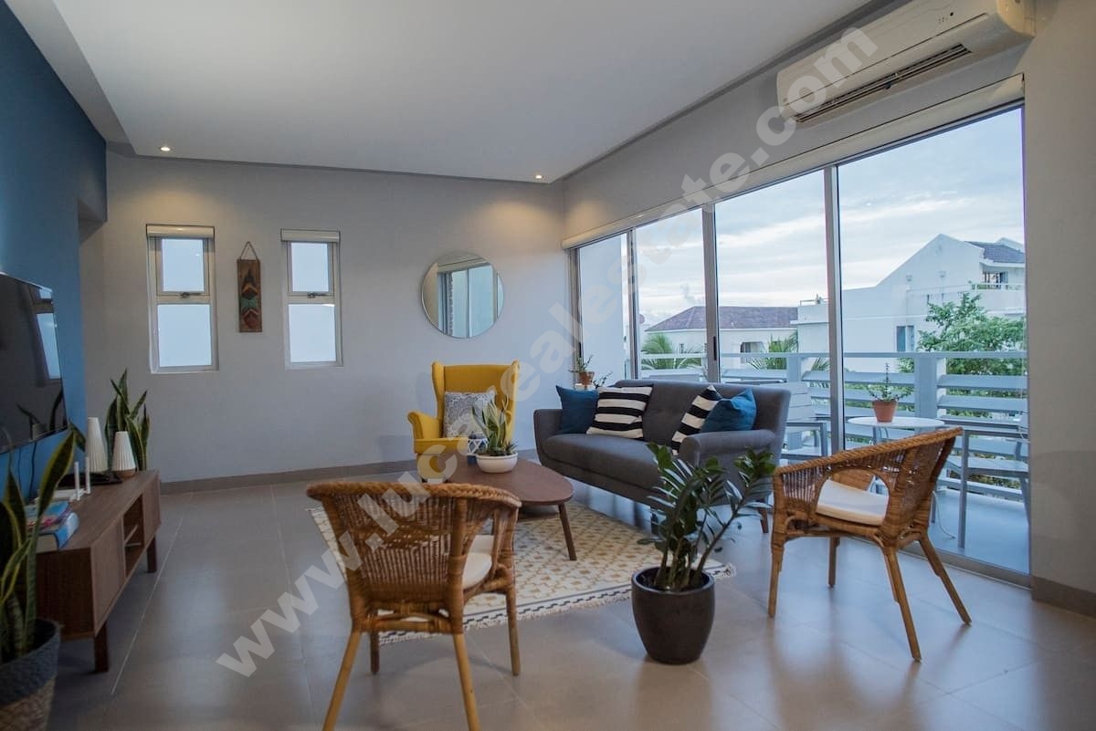 Hermoso penthouse con 215 Mts.2 de construcción completamente amueblado y equipado, en un tercer nivel del edificio Residencial Blu, ubicado en Punta Cana Village, Punta Cana, y divididos entre 155 Mts.2 de construcción y 60 Mts.2 de espacio abierto.