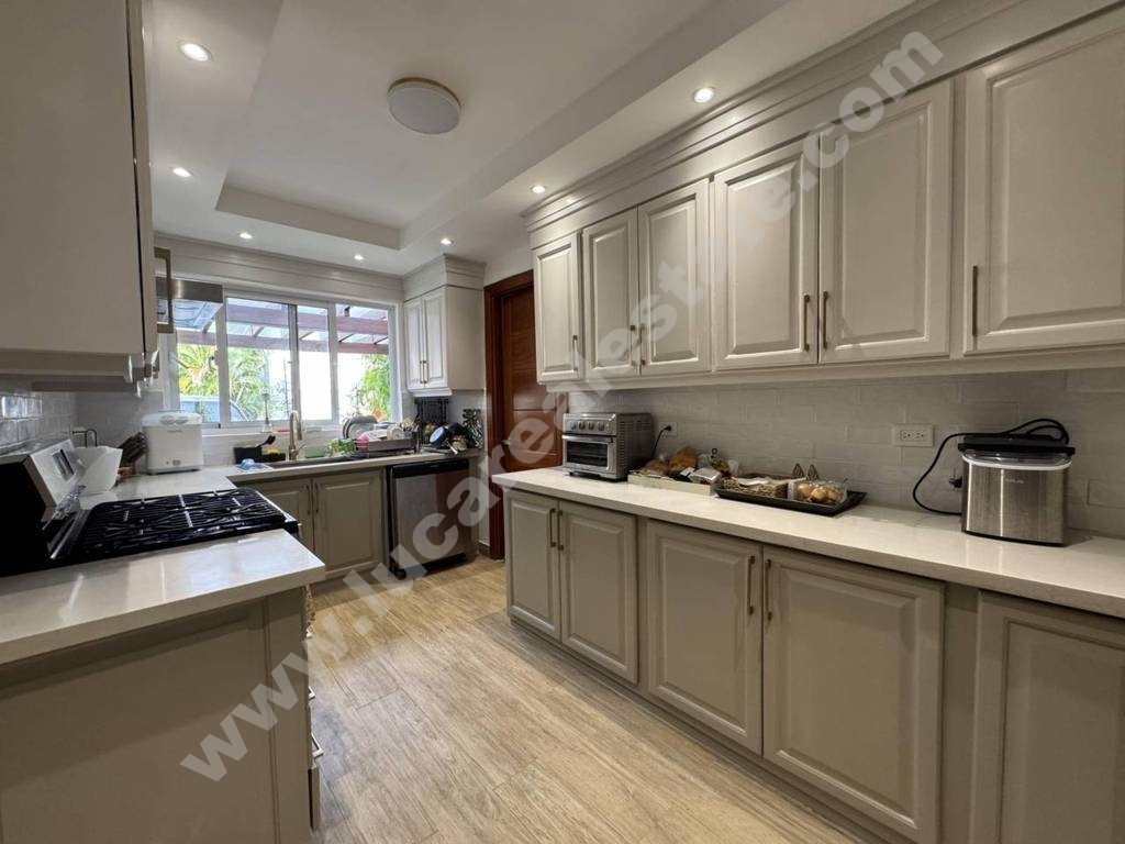 En el primer nivel encontramos un recibidor que nos lleva a un área de comedor con vistas panorámicas al patio, con una gran piscina. y una cocina completamente equipada, así como una sala privada/family room con vistas a la piscina, y una habitación de servicio con su baño. Además encontramos en este primer nivel tres habitaciones cada una con su baño.